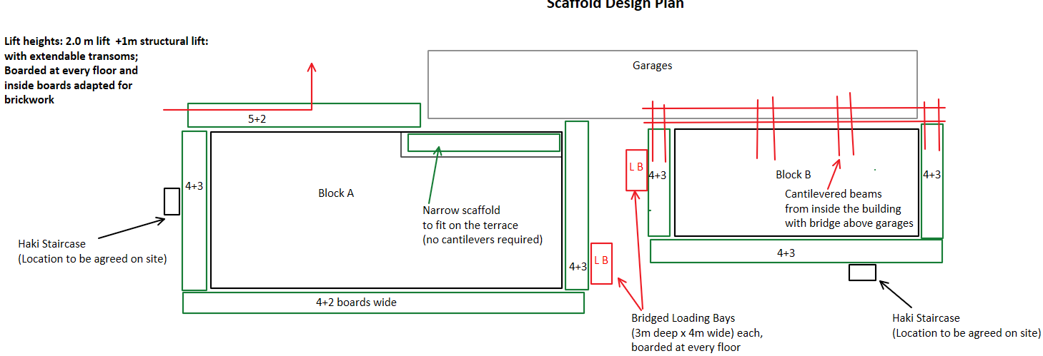 A Scaffold Mark-up is essentially a drawing or diagram of the existing site or structure, marked up by the client, scaffold contractor, or designer to highlight the intended scaffold arrangement, access points, and any critical details that need to be considered during the design process. It provides visual context to the project requirements and helps to ensure that all parties involved have a clear understanding of what is needed.